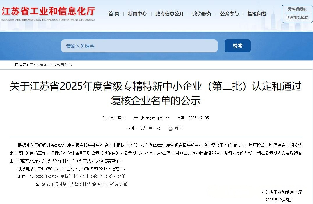 苏州壹号娱乐传感器科技有限公司凭借在传感器领域的深厚积累与持续创新,成功通过严格评审,荣获省级专精特新中小企业认定!